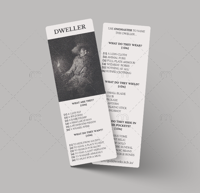 | Tags | bookmark, character-creation, character-generator, journaling, random-generator, random-tables, tool, Tabletop role-playing game |